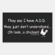 ADD Chicken Humor Saying Rectangular Sticker