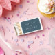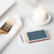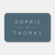 This wedding matchbox features the names of the wedding couple in white against a blue slate color background.