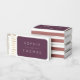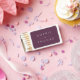 This wedding matchbox features the names of the wedding couple in white against a dark purple slate color background.
