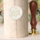 Before the wax hardens, gently and evenly press the wax seal stamp into the melted wax, ensuring it's centered.