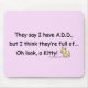 They say I have ADD but I think they're full... oh look, a kitty! With a cute yellow kitty cat. Funny and humorous Attention Deficit Disorder. The light pink background can be changed to any color you want.
