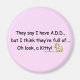They say I have ADD but I think they're full... oh look, a kitty! With a cute yellow kitty cat. Funny and humorous Attention Deficit Disorder. The light pink background can be changed to any color you want.
