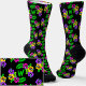Add Initial, Hibiscus Tropical Flowers on Black Socks