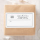 This return address label has a white background and black rectangle border. Add you logo, your name in calligraphy script and your return address.