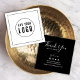 Stylish packaging insert card featuring your logo and a square black border on the front and "Thank You" in modern calligraphy script with the rest of your social media and web information on the back. You can change the back background color by clicking customize and change background.