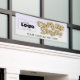 This unique business coming soon pre-grand opening sign offers placement for your logo and some adjustable text to say whatever youd like.