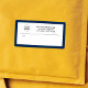 This return address label has a white rectangle center and an editable border color (click customize and change the background color to change the border color from blue to that of your choosing). Add you logo, your business name and your return address.