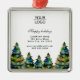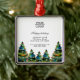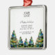 Add Logo Custom Text Christmas Pine Tree Promotion Metal Ornament. Watercolor colorful Christmas pine trees. Insert your logo into the template and customize the text, company name, address and contact information. Business promotion or giveaway for your clients and business partners.