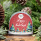 Add Logo Custom Text Christmas Tree Customer Holiday Snow Globe. Watercolor colorful Christmas trees. Insert your logo into the template and customize the text, company name, address and contact information on the backside. Business promotion or giveaway for your clients and business partners for holiday.