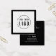 Stylish packaging insert card featuring your logo against a white square center with an editable border color (click customize and change background color to change border color from black to a color of your choice) on the front and "Thank You" in modern calligraphy script with the rest of your social media and web information on the back. You can also change the back background color by clicking customize and change background.