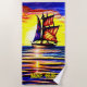 Add Name, Abstract Sailing Ship with Brown Sails Beach Towel
