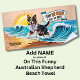 Add Name, Australian Shepherd Running in the Waves Beach Towel