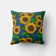 Add Name Golden Sunflowers & Leaves on Dark Blue Throw Pillow