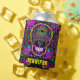 A sugar skull in neon pink colors and a flower background. Add a name or message to personalize this fun gift idea.