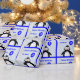 Personalize this cute penguin wrapping paper by adding a name in the box. Children love penguins, and this one has a bright blue 3rd birthday balloon. The default greeting is "Happy Birthday" but you can change this too. The tiled design ensures easy guidelines for cutting the paper to size.
