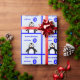 Add name penguin 3rd birthday blue wrapping paper