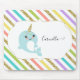 Add Name Personalized Rainbow Narwhal Gold Glitter Mouse Pad