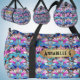 Add Name Pink Blue Art Deco Abstract Flowers Duffle Bag