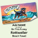 Add Name, Rottweiler Dog Running in Waves Beach Towel