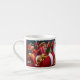 This Santa print cup is an espresso mug so it fits nicely in little hands.