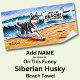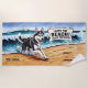 Add Name, Siberian Husky Splashing in Waves Dog Beach Towel