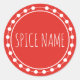 Red spice jar label stickers with a whimsical typeface. Simply delete the words and add your spice name. When your spice jar labels get worn and stained, refresh them with this cute style spice jar label. TIP: If the spice name is too long to fit on the line click "customize" and click on the font and make the type size smaller.