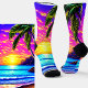 Add Name, Stylized Beach Sunset with Palm Tree Socks