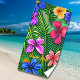 Add Name, Stylized Tropical Flowers & Leaves Beach Towel