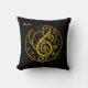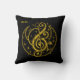 Add Name Text Abstract Golden Treble Clef on Black Throw Pillow