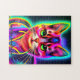 Add Name Text, Rainbow Neon Effect Cat Jigsaw Puzzle
