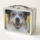 This is a standard metal lunchbox that appears to work just fine. We designed this box ourselves with an uploaded photo and custom text on the front and back. It looks absolutely beautiful except the front of the lunchbox is not centered like it shows in the photo. The print borders don't align with the inset flat part of the box where the preview photo online showed it perfectly centered in there. The back looks nice and centered though.