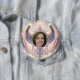 Add a photo to this comforting memorial button with angel wings and a cloud in pastel colors.