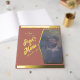 Add your desired photo to this modern wedding foil guest book. Copper penny color with real gold foil. Fun, modern design. Customize the text on front and side of the book. Use the template to create your own modern photo wedding foil guest book.