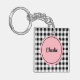 Trendy black & white buffalo check pattern with framed script name on a pink background and your custom photo on back. Easily change the name and add your photo to make it yours using the Template provided. This design fits square and round shapes. Designed to withstand daily wear and tear, this keychain displays designs and text, in vibrant clarity and brilliant colors. Diameter is 2" made of ultra-durable acrylic, UV resistant and waterproof. See "About This Product" at side for more information.