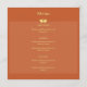 Add your photo to this wedding engagement menu. Great for engagement parties, weddings, and special events. Customize the text on the front and back of the menu. Terracotta and gold colors. Add one photo. Use the template to create your own photo wedding menu.