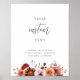 Elegant sign where you can add your custom text! Design with beautiful modern calligraphy details and an exquisite floral border with flowers in burgundy blush, dusty rose, pink, peach, champagne, and yellow hues. Ability to also use this sign with any text you like using the template text boxes. You can even select to edit the text using the design tool and make changes to its font style, size, color, and positioning. 10" x 8" is only our default size, the sign is available in many sizes. Easy to frame or glue/staple into inexpensive MDF.