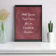 Over a deep burgundy red grunge, a template field was added for your text. Use this space to add your favorite quote or sentiment. Maybe it's funny. Perhaps you need a poster that motivates you. Whatever your reason, make this design your own. The font can be changed if you prefer. Another version featuring this background but with an alternate font is also available.