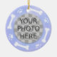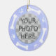 A cute and customizable photo frame ornament for dog owners and puppy fans everywhere. This blue and white frame features a cute dog bone and pawprint motif and has a space to easily add your favorite doggy photo. Customize the text on the back with a personal message to create a cherished keepsake for a dog lover or just as a memento of your own very special pooch.