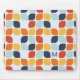 This mid-century modern pattern features orange, teal and teal geometric shapes.