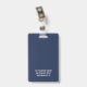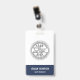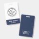 Add your logo to this simple navy blue and white badge to create custom branded name tags for your employees. Customize with a name and title, and add your business address or additional information to the reverse side in white on navy.