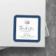 This sticker has the words "Thank You" in calligraphy script and you can also add your social media handles and hashtags as well as your web address against a white square center and an editable border color (click customize to change background color to change border from blue to a color of your choice). It makes a great sticker to stick on to mail and packages sent to your customers