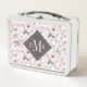 Add Your Monogram | Classic Pink & Gray Pattern Metal Lunch Box