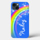 Help protect your child's iphone 6 from knocks and kiddy accidents, with this pretty rainbow design girls tough iphone 6 case. Personalise with your childs name up to 5 letters, perfect short names or nicknames. This example reads Hailey. Exclusively designed and illustrated by Sarah Trett.