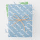 This gift wrap has three different color options:.light blue background with a repeating name in white, white background with a repeating name in light blue, light green background with a repeating name in white.