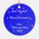 Lightweight, smooth, pure white ornament with nice sheen. Perfect size to be seen from across the room ... and to attract closer inspection! Price was great for ordering enough for the whole family! Clear, bold black design just as requested. Matches the order exactly. Just so nice!