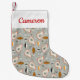 Perfect! Exactly what I ordered! I uploaded a picture of my blue chow, and the screen print was incredible. the back side of the stocking was the red and black checkered print. my puppy's name was also printed on the cuff of the stocking. PERFECT! Highly recommend this product! My puppy's name was screen printed onto the cuff of the stocking, the font was perfect!