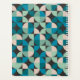 This mid-century modern pattern features turquoise and green geometric shapes.