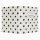 A soft, black polka dot pattern over a wooden panel backdrop. Artist: Jess Aiken