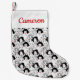 Perfect! Exactly what I ordered! I uploaded a picture of my blue chow, and the screen print was incredible. the back side of the stocking was the red and black checkered print. my puppy's name was also printed on the cuff of the stocking. PERFECT! Highly recommend this product! My puppy's name was screen printed onto the cuff of the stocking, the font was perfect!