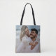 - Change out the photo on the front and the photo on the back for your own photo with this custom photo- double-sided- print all over tote bag. There are two styles, each in two sizes to choose from for this awesome photo tote bag. Use your engagement - wedding photos and you can use this tote for all your wedding planning needs!